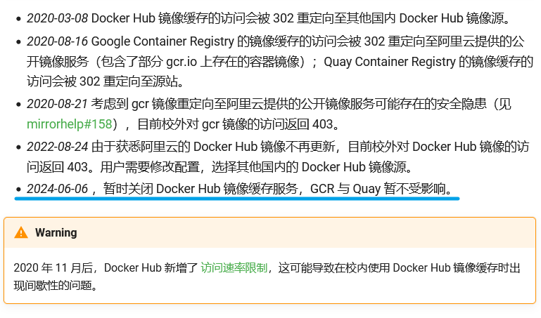 2024-06-06-中科大镜像站发布公告关闭 Docker Hub 镜像缓存服务, GCR 与 Quay 不受影响